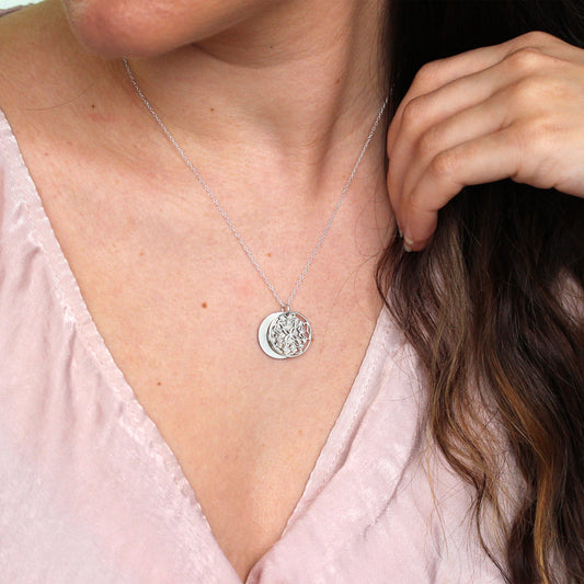 Normaler PreisSterlingsilber September Aster Geburtsblume & 18mm Gravierbar Namensschild Halskette 14 - 56cm