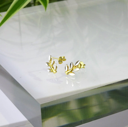 Normaler PreisVergoldet Sterlingsilber Diamantschliff Blatt & Zweig - Ohrstecker