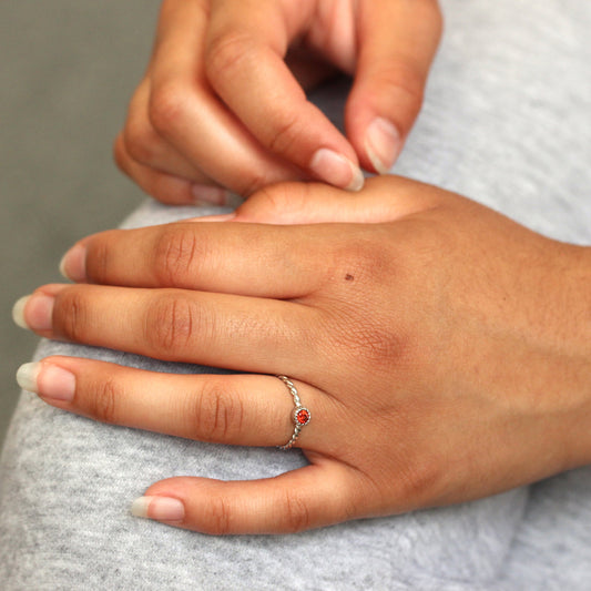 Normaler PreisSterlingsilber & Granat CZ Kristall Januar Geburtsstein Twisted Rope Ring I - U