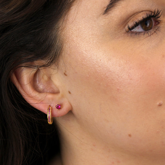 Normaler PreisVergoldet Sterlingsilber Rubin CZ Pavé Fassung 15mm Creolen Ohrringe
