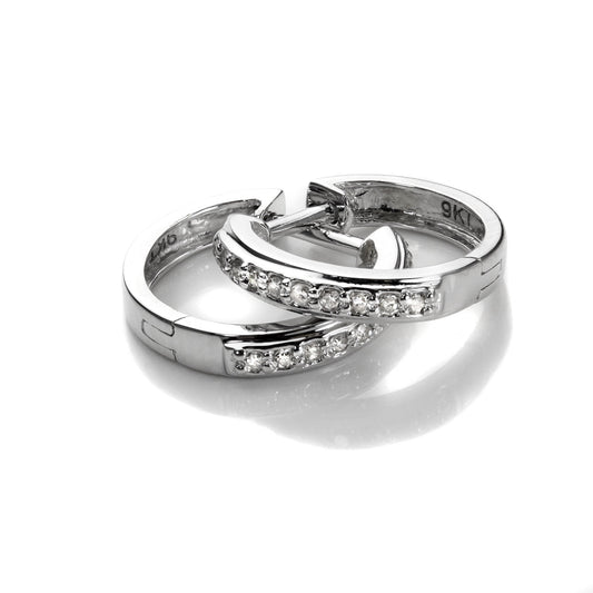 Normaler PreisSterlingsilber Schwarz CZ Doppel Kanal Fassung 12mm Klappcreolen Ohrringe
