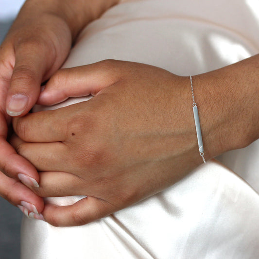 Normaler PreisSterlingsilber Verstellbar 18cm - Armband mit Klar CZ Kristall Stange