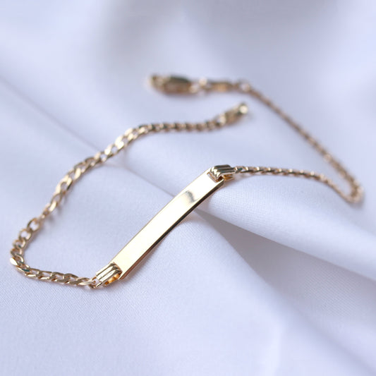 Normaler PreisVergoldet Sterlingsilber Figaro Gravierbar Namensschild Armband 18cm