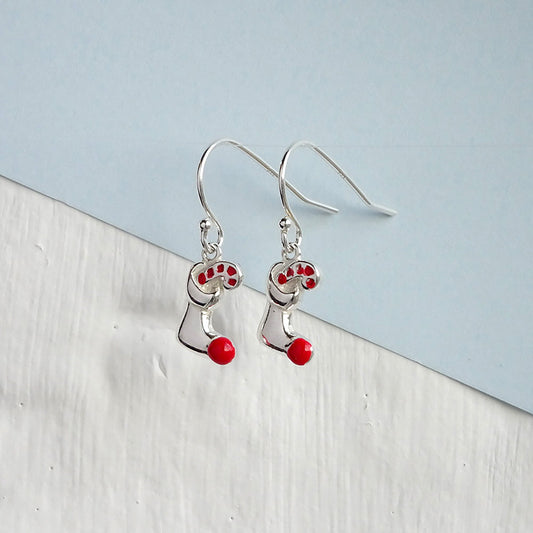 Normaler PreisSterlingsilberWeihnachtsstrumpf & Zuckerstange Baumel Ohrringe