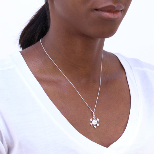 Normaler PreisGroß Sterlingsilber & CZ Kristall Schneeflocke 45,5cm Halskette