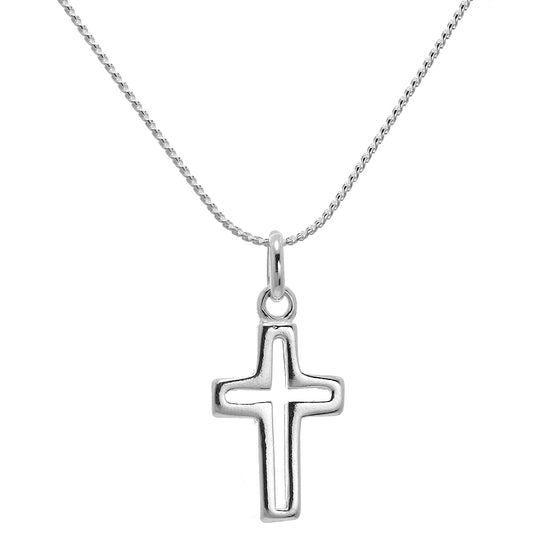 Sterling Silber Outline Kreuz Anhänger Halskette