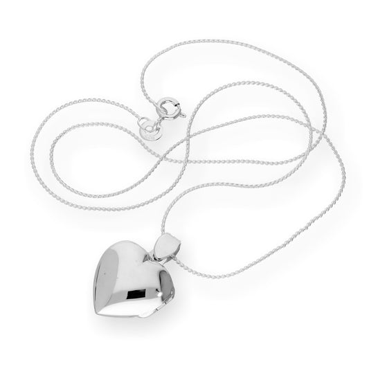 Normaler PreisSterling Silber graviertes aufgeblasenes Herzmedaillon an einer Kette 16 - 22 Zoll