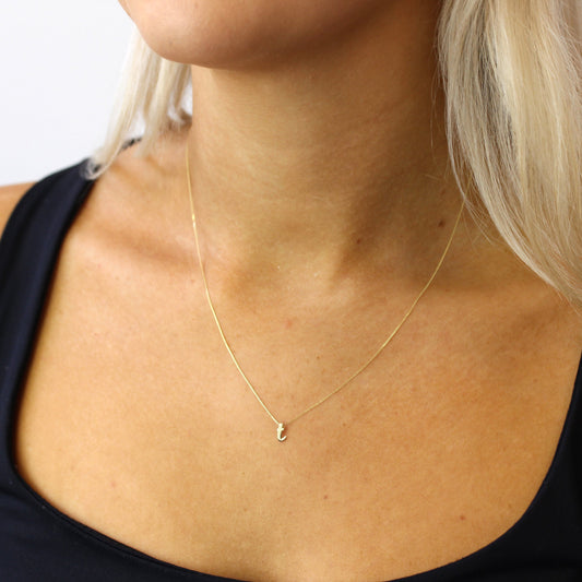 Normaler PreisKleine Halskette mit Anhänger aus 9 Karat Gold in Form des Buchstabens U, 16–20 Zoll