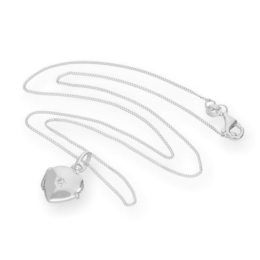 Normaler PreisKleines Sterling Silber & CZ Kristall gravierbares Herzmedaillon an einer Kette 16-22 Zoll