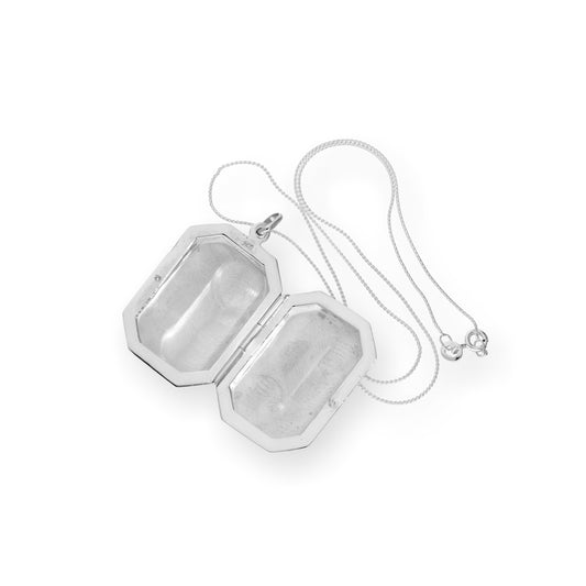 Normaler PreisGroßes graviertes achteckiges Medaillon aus Sterlingsilber an einer Kette, 40–56 cm