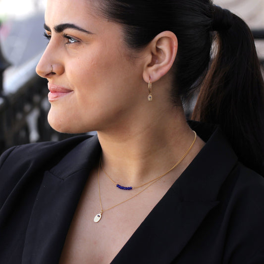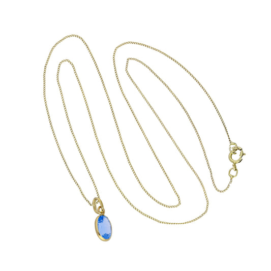 Normaler PreisHalskette mit ovalem Anhänger aus 9 Karat Gold und Aquamarin-CZ, 40–50 cm