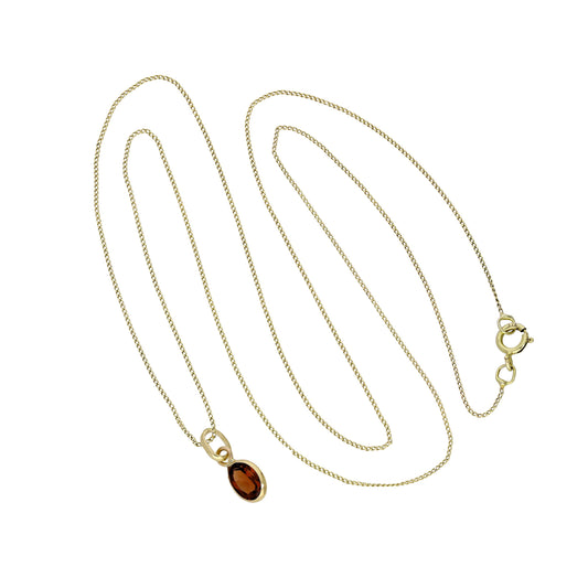 Normaler PreisHalskette mit ovalem Anhänger aus 9 Karat Gold und Granat-CZ-Kristall, 40–50 cm