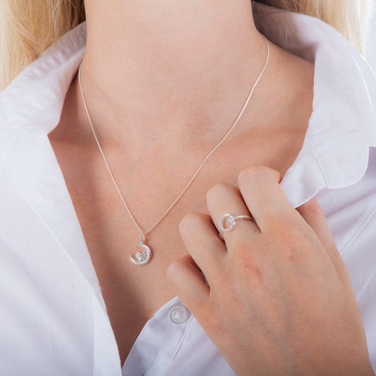 Normaler PreisSterling-Silber- und CZ-Kristall-Wishbone-Ring mit Herzen Größe I – W
