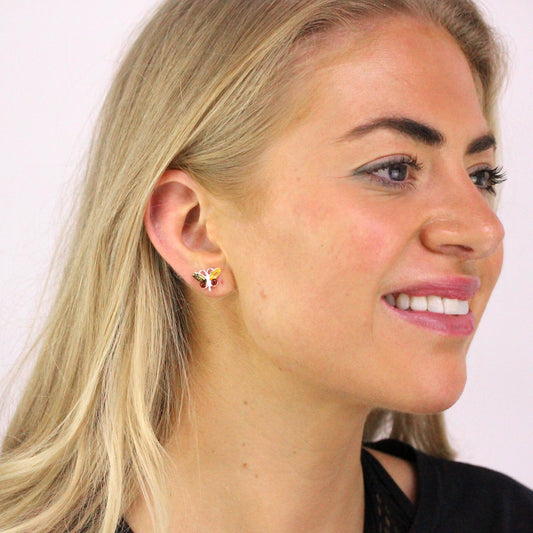 Normaler PreisSterlingsilber & Mehrfarbig Baltischer Bernstein Schmetterling Ohrstecker