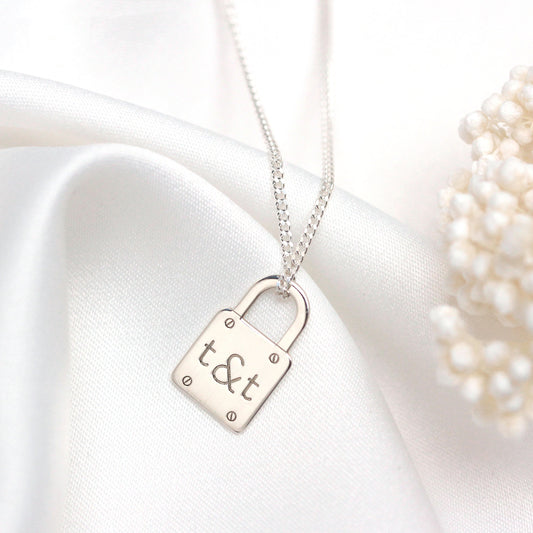 Normaler PreisMaßgefertigte Halskette aus Sterlingsilber mit Initialen und Vorhängeschloss 16–28 Zoll