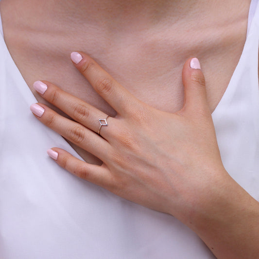 Normaler PreisOffener Ring aus Sterlingsilber in Diamantform in den Größen J–V