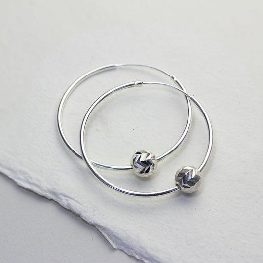 Normaler PreisSterlingsilber Leichtgewicht 30mm Diamantschliff Schläfer Creolen Ohrringe