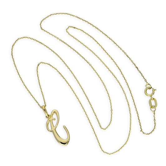 Normaler PreisHalskette mit Anhänger aus 9 Karat Gold mit verschnörkelter Kalligraphie-Schrift und Buchstabe C, 16–20 Zoll
