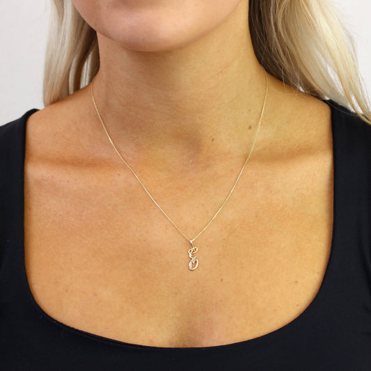 Normaler PreisHalskette mit Anhänger aus 9 Karat Gold mit verschnörkelter Kalligraphie-Schrift und Buchstabe I, 16–20 Zoll