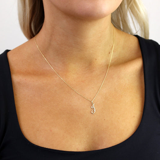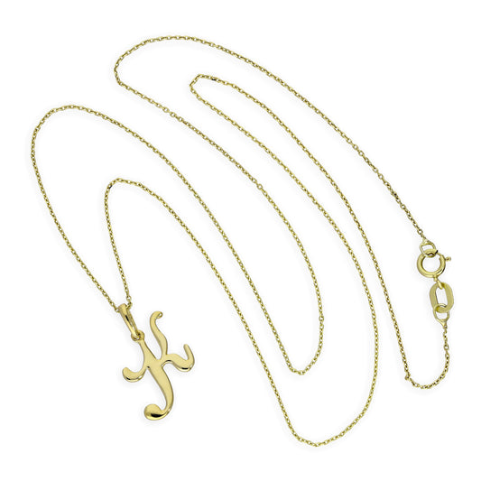 Normaler PreisHalskette mit Anhänger aus 9 Karat Gold mit ausgefallener Kalligraphie-Schriftzug-Buchstabe J, 16–20 Zoll