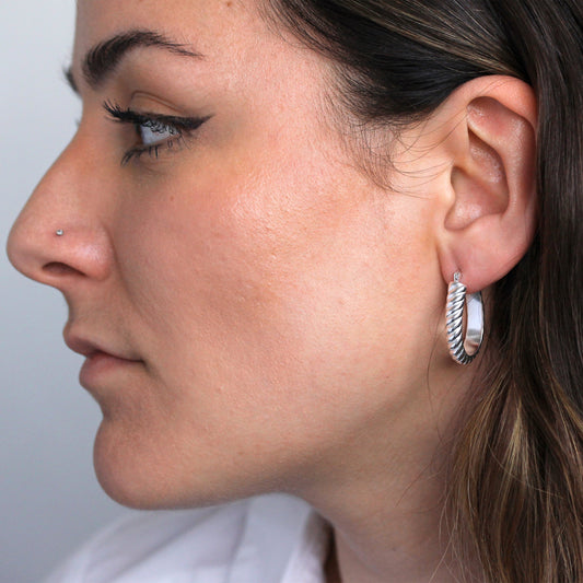 Normaler PreisSterlingsilber Klobig Oval Linie Creolen Ohrringe