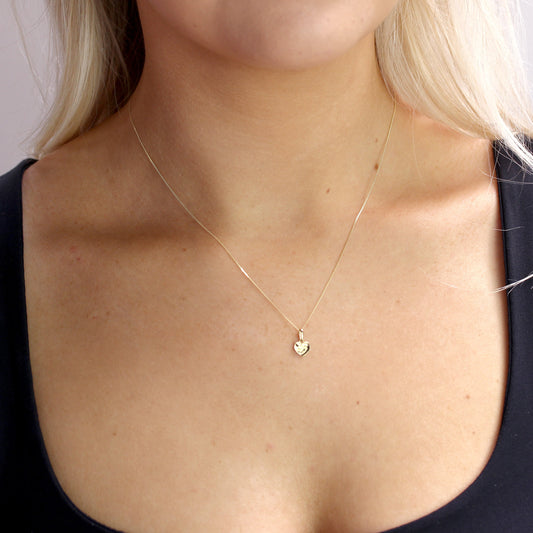 Normaler PreisHalskette mit Herzanhänger aus 9 Karat Gold mit gehämmerter Oberfläche