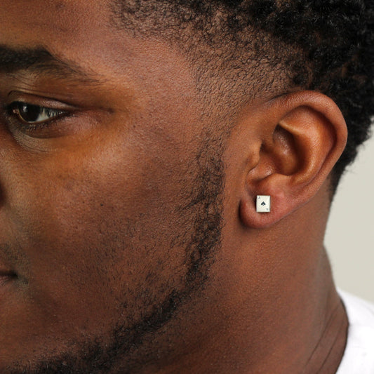 Normaler PreisSterlingsilber Gewölbt Pik As Herren Einzel Ohrstecker
