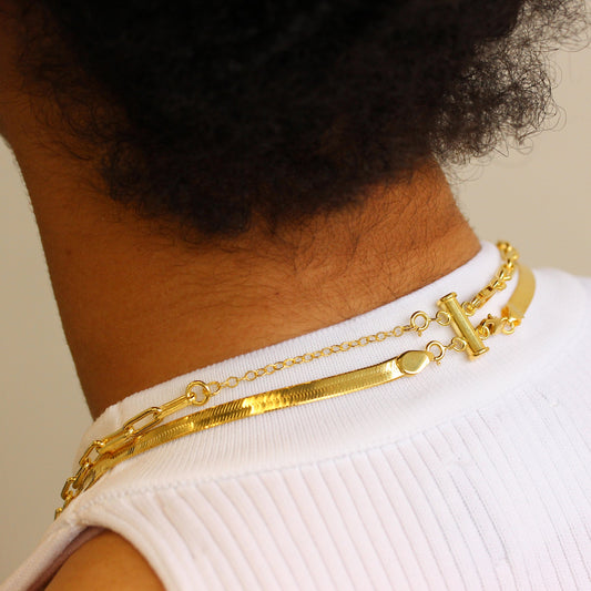 Normaler PreisVergoldet Sterlingsilber 2 - Reihig Überlagerungs Halskette Bolzenringverschluss