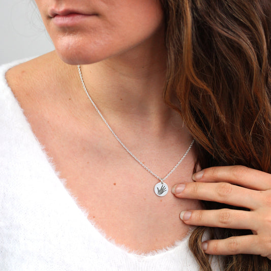 Maßgefertigte Halskette aus Sterlingsilber mit rundem Handabdruck 16–24 Zoll