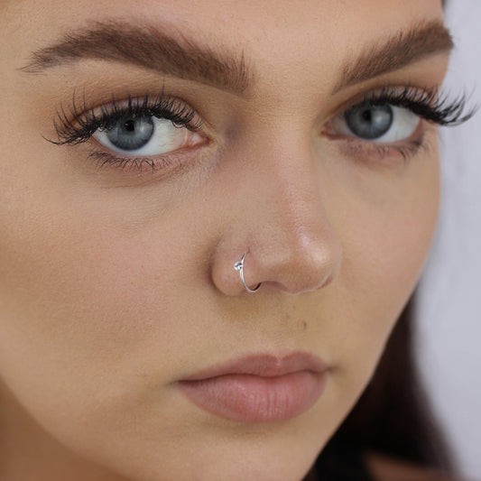 Normaler PreisSterlingsilber Dreifach 2mm CZ 7mm 23Ga Creolen Nasenring