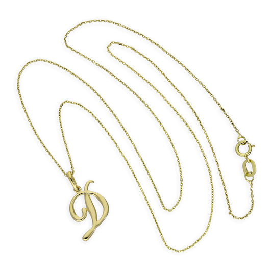 Normaler Preis9 Karat Gold Fantasievoll Kalligrafie Schrift Buchstabe D Anhänger Halskette 40,5 - 51cm