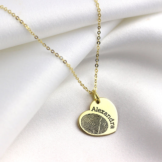 Normaler PreisPersonalisierter 9-karätiger Gold-Anhänger mit Fingerabdruck und Herz