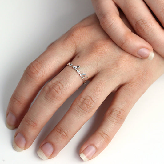 Normaler PreisPersonalisierter, verstellbarer Sterling Silber Namensring