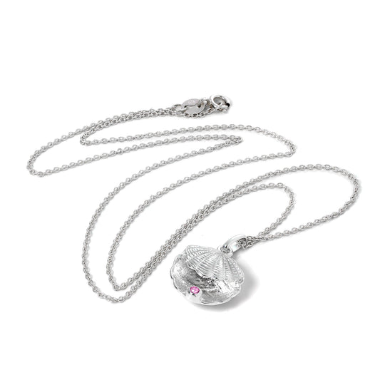 Normaler PreisSterlingsilber Austern Muschel mit CZ Kristall Turmalin Geburtsstein Halskette