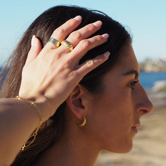Normaler PreisVerstellbarer schlichter Ring aus vergoldetem Sterlingsilber mit dickem, flachem Band