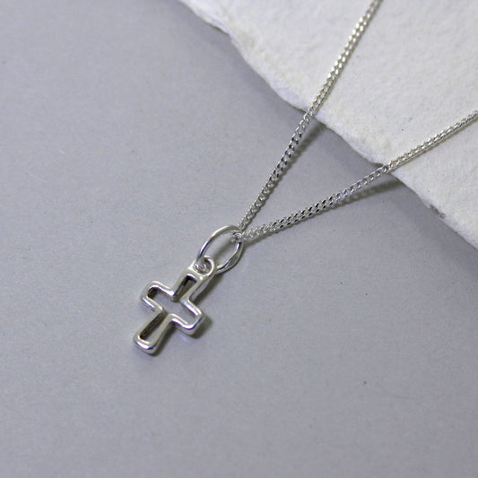 Normaler PreisKleine Halskette aus Sterlingsilber mit Kreuzumriss – 14–32 Zoll
