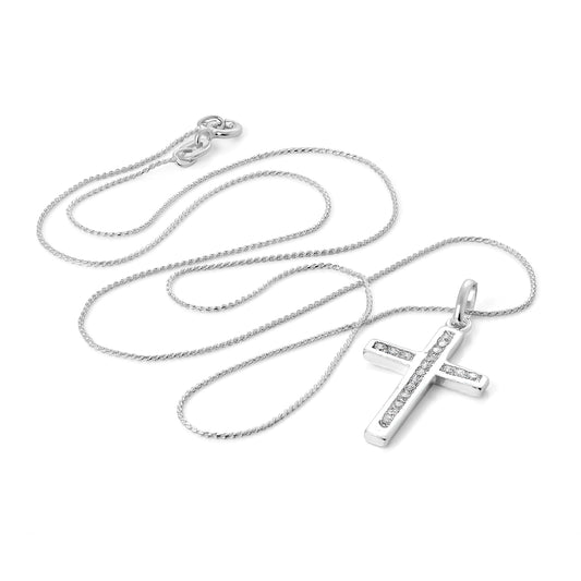 Normaler PreisSterling Silber & CZ Kristall Kreuz Anhänger Halskette 16 - 22 Zoll