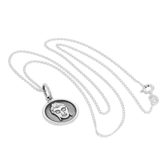 Normaler PreisHalskette mit rundem Buddha-Anhänger aus Sterlingsilber, 14–32 Zoll