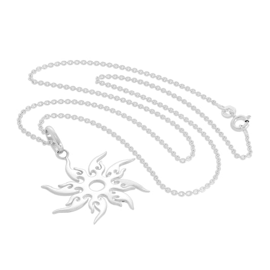 Normaler PreisSterling Silber flammende Sonne Anhänger Halskette 16 - 24 Zoll