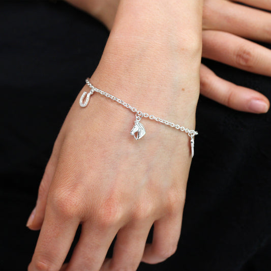 Normaler PreisSterlingsilber 18cm Armband mit Reitsport Anhängern