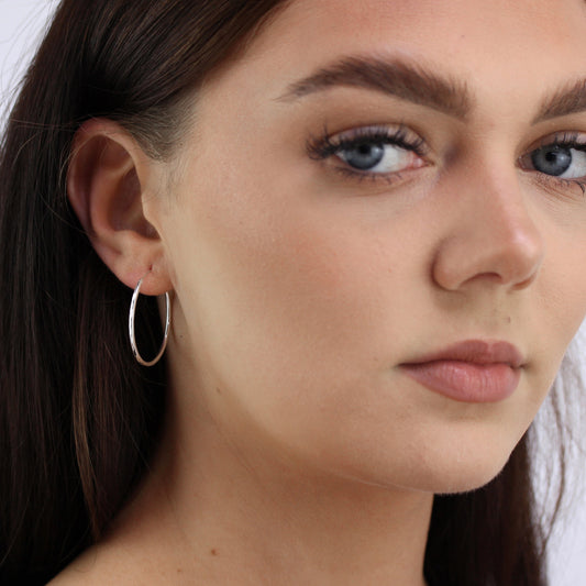 Normaler PreisSterlingsilber Leichtgewicht 30mm Diamantschliff Schläfer Creolen Ohrringe