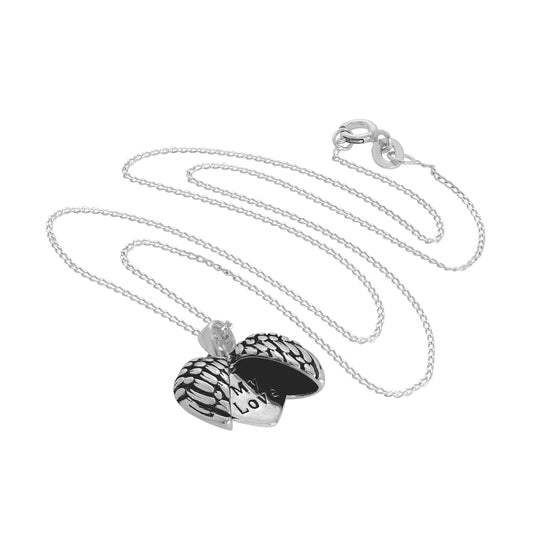 Normaler PreisHalskette mit offenem Engelsflügel-Herzanhänger mit kleinem Herz darin aus Sterlingsilber 14–32 Zoll