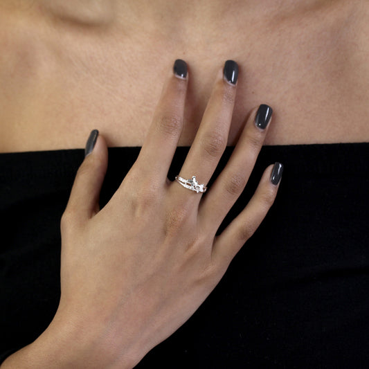 Normaler PreisGeteilter Bandring aus Sterlingsilber mit CZ-Kristallen und Schmetterlingen – UK-Größen J–W