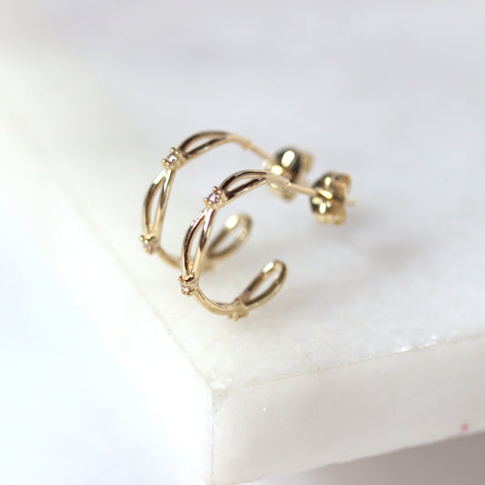 Normaler Preis9 Karat Gold CZ Geflecht 12mm Offen Creolen Ohrstecker