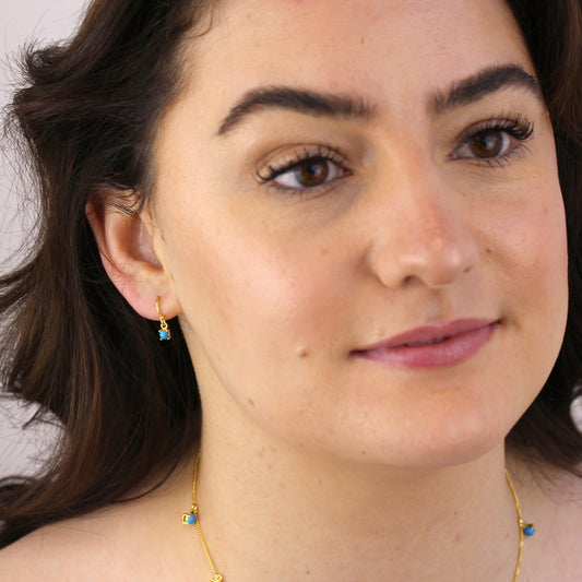 Normaler PreisVergoldet Sterlingsilber Türkis Dezember Geburtsstein Anhänger Creolen Ohrringe