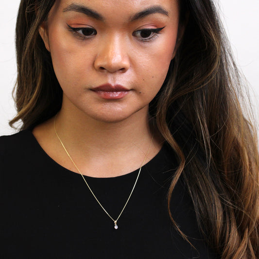 Normaler PreisHalskette aus 9 Karat Gold mit 5 mm rundem klarem CZ in Krappenfassung, 16-20 Zoll
