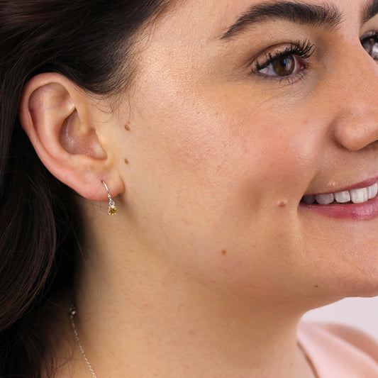 Sterlingsilber Zitrin CZ Klappcreolen Ohrringe & 4mm Ohrstecker Satz