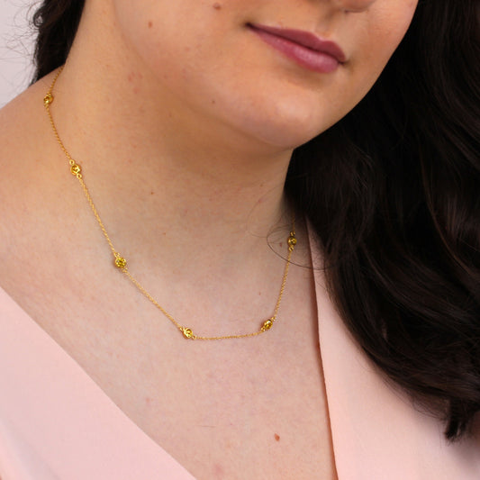 Normaler PreisHalskette aus 9 Karat Gold mit 5 mm rundem Citrin CZ in Krappenfassung, 16-20 Zoll