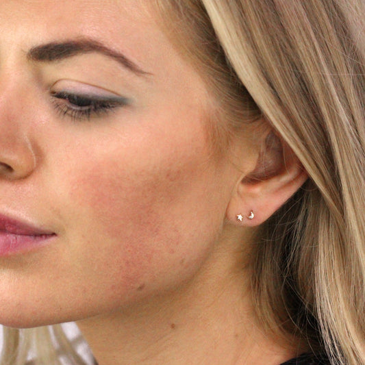 Normaler Preis9 Karat Gold Klar CZ Kristall Stern Mond Ohrstecker
