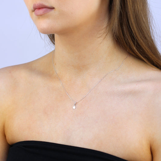 Normaler PreisHalskette mit Sternanhänger aus 9 Karat Weißgold, 16–20 Zoll